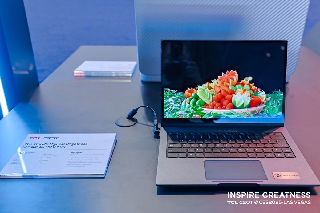 现场还展现了全球最高亮度印刷QD-EL笔电屏,选用高效率印刷用量子点发光资料,分辨率到达240PPI,完成了高精度喷墨打印技能的打破,不只明显提高了颜色纯度和亮度,更保证了极佳的视角体现;BT2020色域覆盖率超越85%,使得画面颜色愈加丰厚细腻;支撑30~120Hz的VRR宽频刷新率,观感流通舒适。该产品是高精度喷墨打印技能的重要打破,TCL华星印刷OLED的下一代技能也将不断演进并晋级迭代到QD-EL,经过将印刷OLED的发光层替换为量子点资料,完成印刷OLED产品技能功能的越级打破。