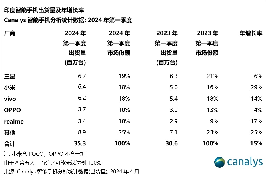 Canalys:2024 年印度智能手机市场强势开局,第一季度保持 15% 增长